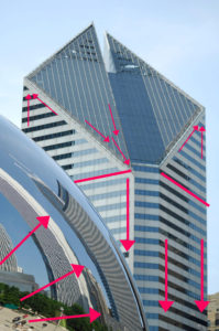 I was standing in the middle of Millennium Park in Chicago, fascinated by how all three basic shapes coexisted in one space. It has become a habit for me to visualize force vectors in this way to understand how these objects interact with the ground.